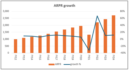 The long product runway and annual pricing enables Auto Trader to sustainably grow ARPR at high-single digits.